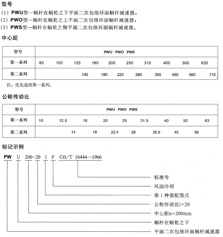 PW系列平面二次包絡(luò)環(huán)面蝸桿減速器執(zhí)行標準GB/T16449-1996,其蝸桿齒面是以一個平面為母面,通過相對圓周運動,包絡(luò)出環(huán)面蝸桿的齒面,再從蝸桿的齒面為母面,通過相對的運動包絡(luò)出蝸輪的齒面,稱平面二次包絡(luò)環(huán)面蝸桿副。包括PWU、PWO、PWS三種形式,主要用于冶金、礦山、起重、運輸、石油、化工、建筑等行業(yè)機械設(shè)備的減速傳動。